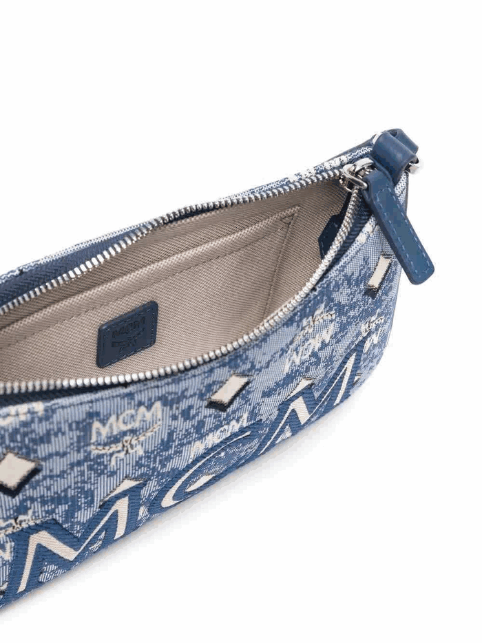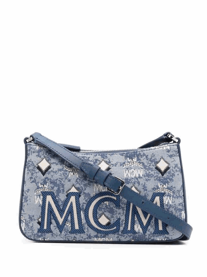 MCM Ladies Blue Shoulder Bag in Vintage Jacquard Monogram MWSBATQ01LU