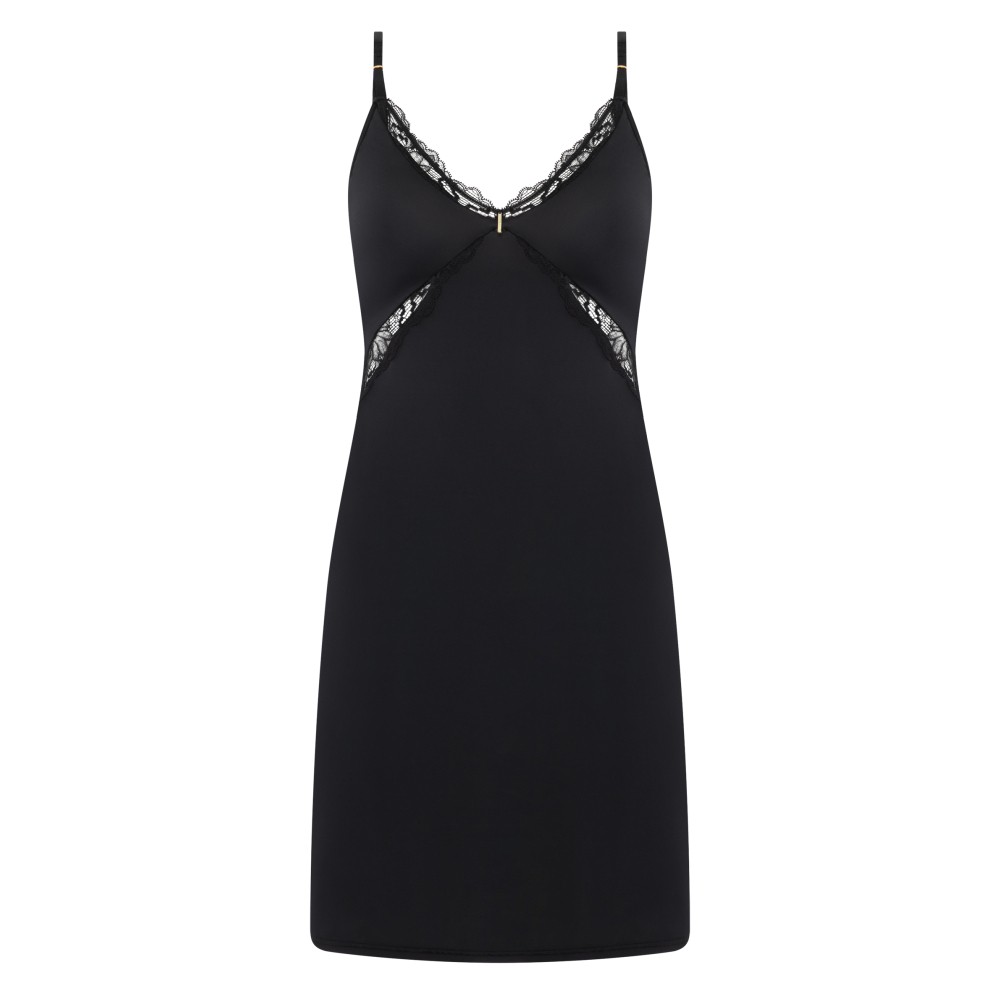 The slits on both sides of the hem are spliced with classic lace webbing, revealing the thigh line faintly